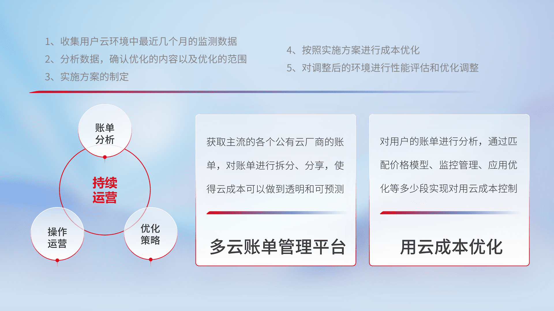 监控业务系统资源开销,,,对资源的消耗精确计量,,,实现费用的透明化管理,,,不断提升资源使用率,,,,调整资源购买方式,,,降低资源费用成本,,,用云成本可预测、、、、用云费用可优化,,云资源配额有据可依。。